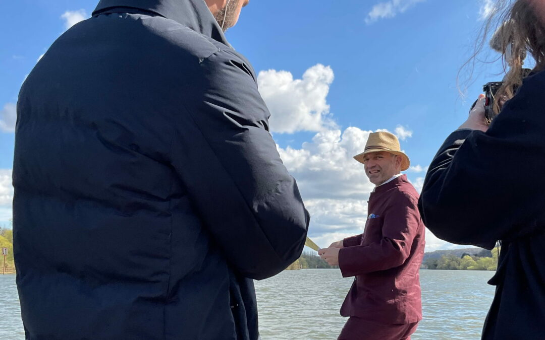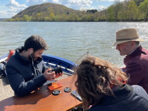 Idée géniale des équipes vidéo de Sotheby’s, aller voir sur place en bateau pour montrer au monde entier la zone et les beautés du paysage. Avec agilité, le Cercle les a embarqué en compagnie de l’expert pour un tournage sous un franc soleil ! nous avions même apporté la carte de la Seine à cette époque !